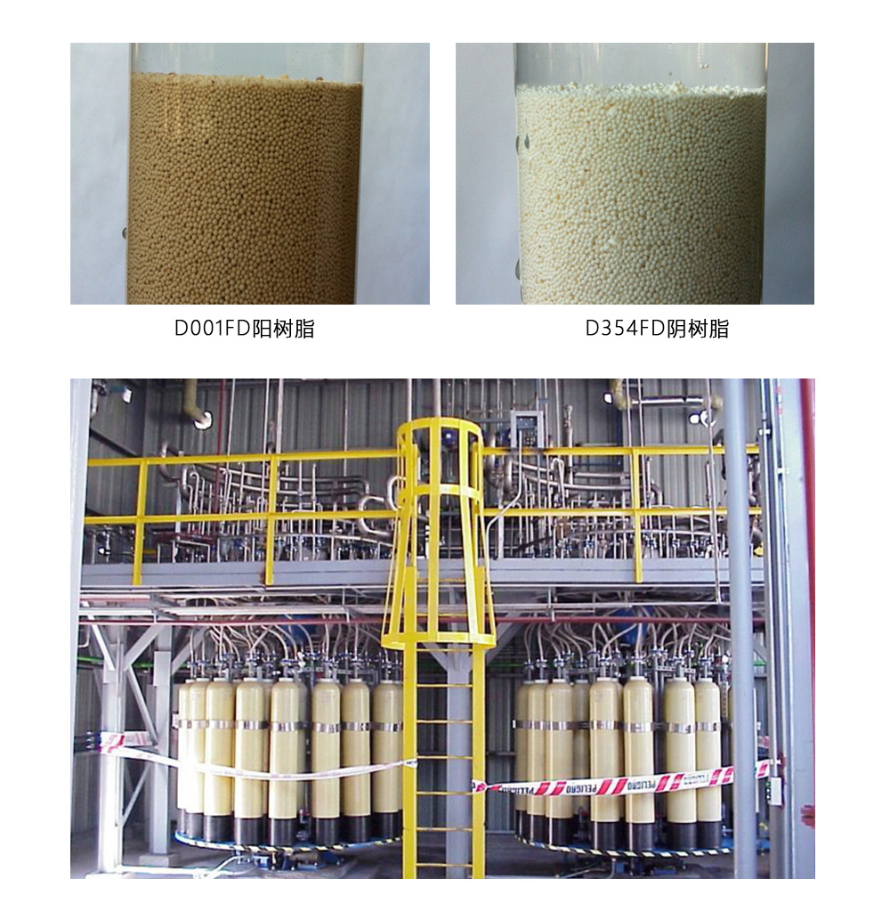 争光D001FD、D354FD、D202FD、001X7FD、FB-3、ZGC151FD-UP、ZGA455FD-H16-UP等,主要特点:交换容量大、树脂强度好、色素吸附率高、洗脱率高。