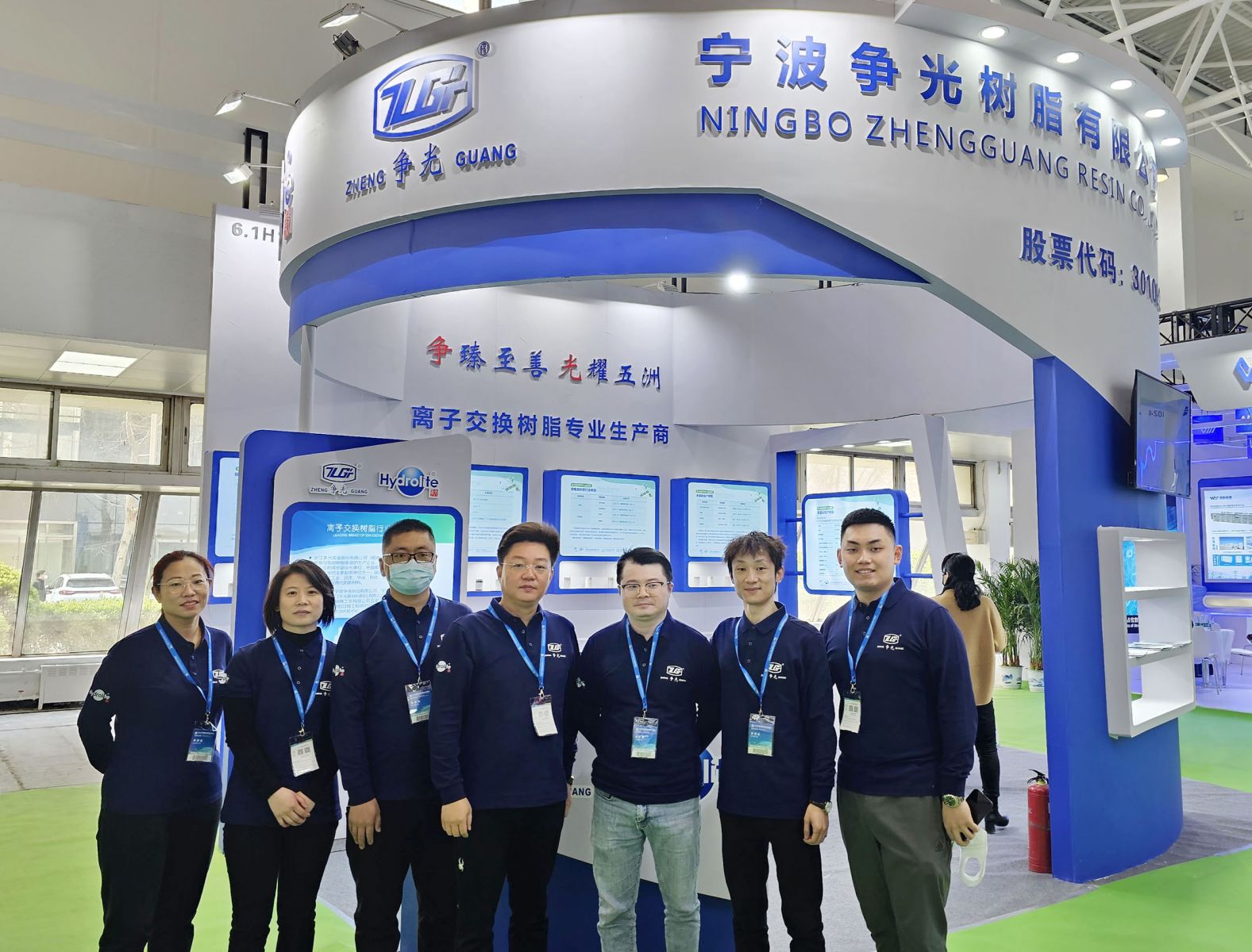 本届展会,争光展出了应用于新能源领域的镍钴锰三元前驱体树脂、碳酸锂生产行业树脂、锂电池回收行业树脂以及多晶硅生产树脂,并向客户推介了卤水中提锂的争光ZG LR328铝系锂吸附剂,通过锂离子印迹技术,使聚合物对锂的结构有记忆效应,吸附剂中的空隙结构对Li+具有高选择性,能够选择性吸附卤水中的Li+,其它分子量较大的阳离子无法进入,在镁锂比高达200∶1的情况下,对锂的选择性仍很高。 采用热水再生即可,无其它杂质产生。ZG LR328铝系聚合物机械强度好、物化性质稳定,百次吸附/脱附溶损率小于0.5%,使用性能稳定。