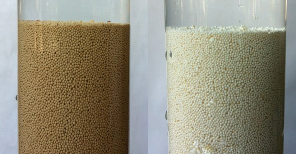 争光糖液脱色专用离子交换树脂完全符合制糖工业的下述要求:(1)树脂无毒残留物,按食品级生产工艺要求特殊处理;(2)具有较高的交换容量,能较好地交换无机盐类和非糖分有机物; (3)对较大的有机分子有交换、吸附能力,有较强的脱色能力;(4)交换速度快,以缩短交换周期,提高设备利用率;(5)耐污染能力强,容易再生,再生剂耗能低;(6)具有较高的机械强度,较长的使用寿命;(7)颗粒均匀,水力学性能好,淋洗快、水耗低。