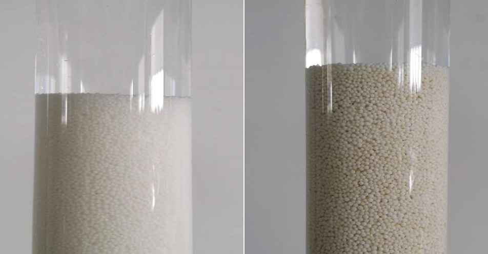 色谱分离树脂利用特定的粒径和粒度的均一性,基于色谱分离树脂对不同组分具有不同的滞留作用,导致一种组分迁移较快,另一种组分迁移慢,从而得以分开。典型的果糖和葡萄糖色谱分离树脂SPC106Ca,是利用树脂与葡萄糖、果糖的结合力形成差异,将母液中的葡萄糖与果糖进行分离,制备高纯度果糖。
