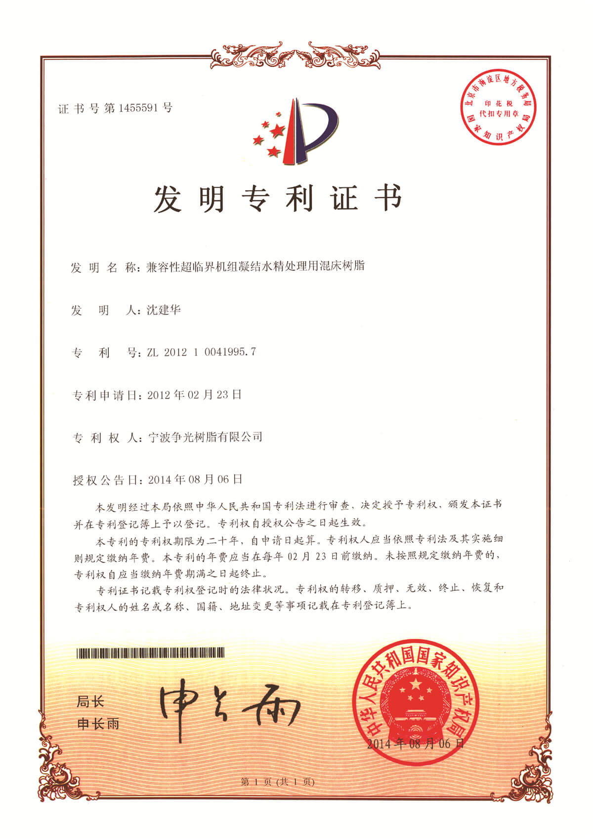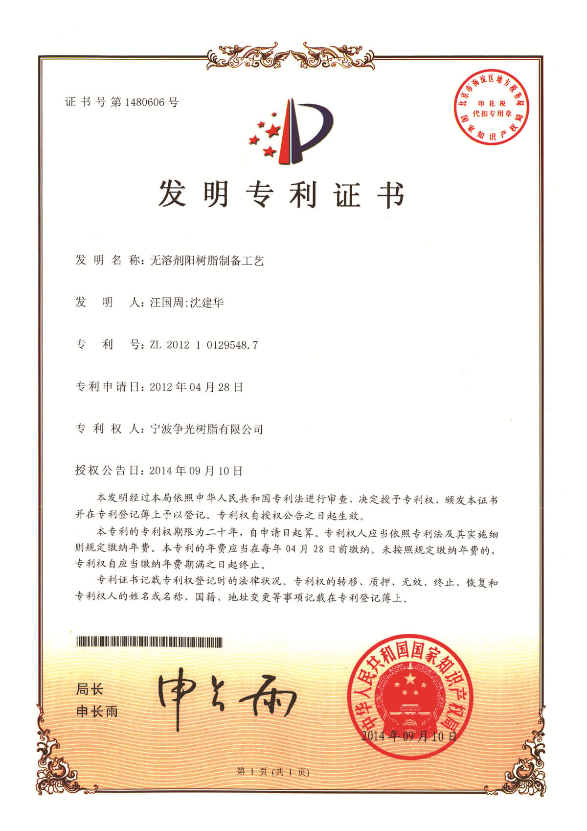 • 工厂1:宁波争光树脂有限公司