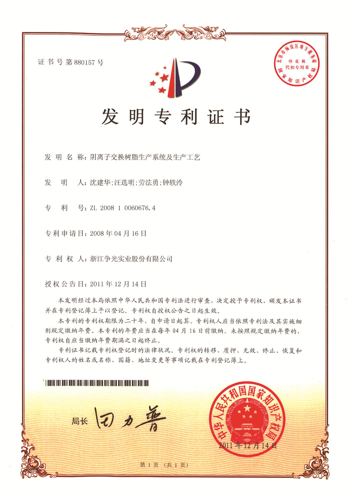 当前位置:首页>关于争光> 专利及标准